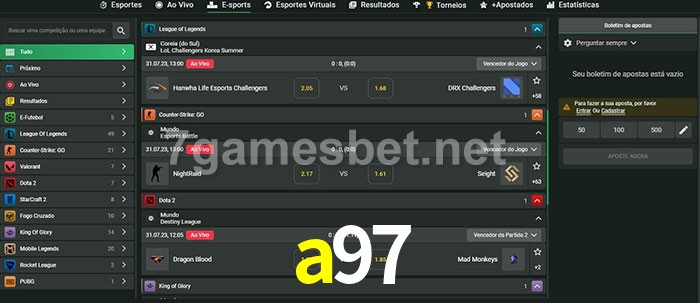 O a97 oferece uma grande seleção de opções de apostas em e-sports com probabilidades competitivas